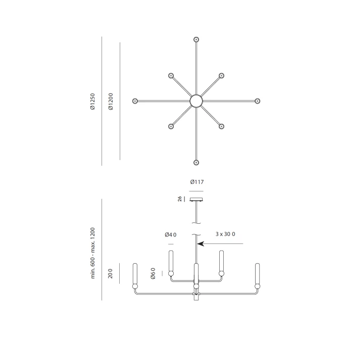 Aromas Lampa wisząca Delie 8 to nowoczesna oprawa oświetleniowa z ośmioma punktami świetlnymi, która doskonale sprawdzi się w przestronnych wnętrzach, takich jak salon, jadalnia czy biuro, tworząc elegancką i równomierną atmosferę świetlną.