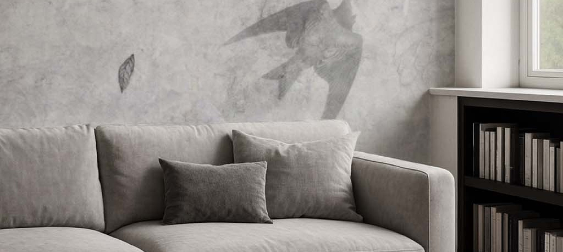 - Harmonijny klimat: Wzór z kwiatami peonii i jaskółkami na tle betonu wprowadza do pomieszczeń spokojny, lecz niezwykle stylowy klimat, idealny do salonów, sypialni i przestrzeni biurowych.