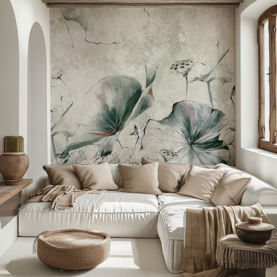 Estel przenosi Cię w świat spokoju i harmonii, łącząc naturalną piękną z surowością miejskiego krajobrazu. Liście lotosu, symbolizujące odrodzenie i czystość, delikatnie unoszą się na tle szarego betonu, tworząc kontrast między naturą a miejską rzeczywistością. Ich subtelna forma i spokojne kolory wtapiają się w surowość betonu, tworząc wyjątkowy kontrast między organicznym a sztucznym. Ta tapeta jest zaproszeniem do momentu refleksji i odprężenia w otoczeniu nowoczesnej estetyki miejskiego życia.