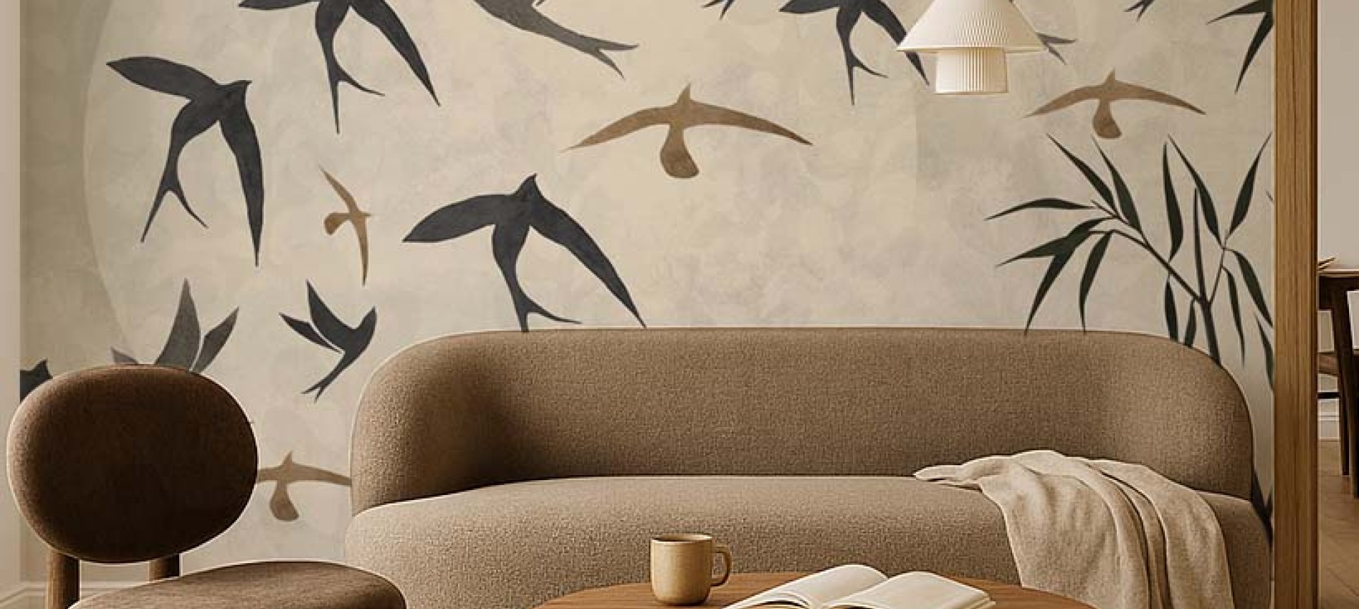 Dzięki swojej subtelnej estetyce tapeta „Gandi” doskonale wpisuje się w trendy wnętrzarskie, dodając pomieszczeniu ciepła i przytulności. Motyw ptaków w locie symbolizuje wolność, lekkość i harmonię, co sprawia, że przestrzeń nabiera wyjątkowego charakteru. Tapeta świetnie komponuje się zarówno z naturalnymi materiałami, takimi jak drewno czy len, jak i nowoczesnymi elementami wystroju.