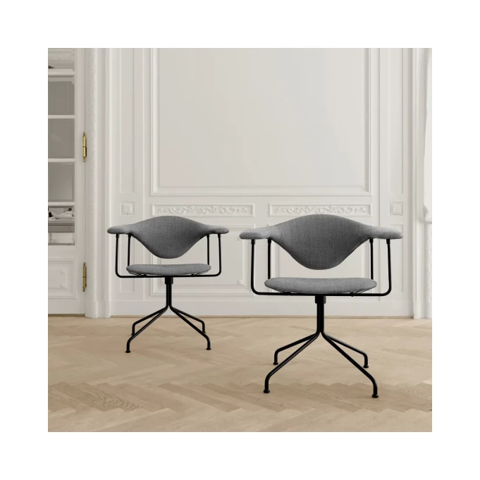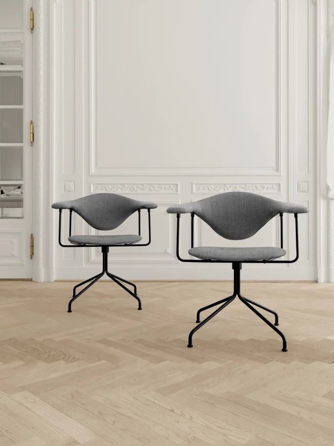 Gubi Krzesło Biurowe Masculo to eleganckie i ergonomiczne krzesło o charakterystycznym, rzeźbiarskim oparciu, zaprojektowane dla maksymalnego komfortu pracy.