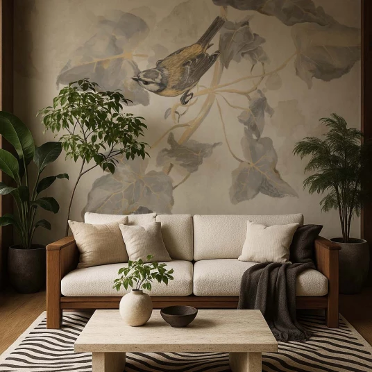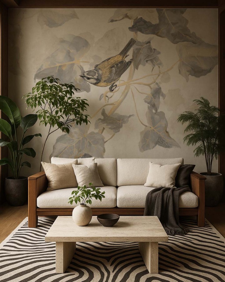 Elegancka tapeta Isabel to wspaniała propozycja tapety zarówno do pokoju dziecięcego jak i do salonu czy sypialni. Ciepłe barwy tapety wprowadzają przytulną aurę, a subtelne akcenty roślinne dodają wnętrzu charakteru. W centralnym punkcie tapety znajduje się mały ptaszek, który na życzenie może być z tapety usunięty :)