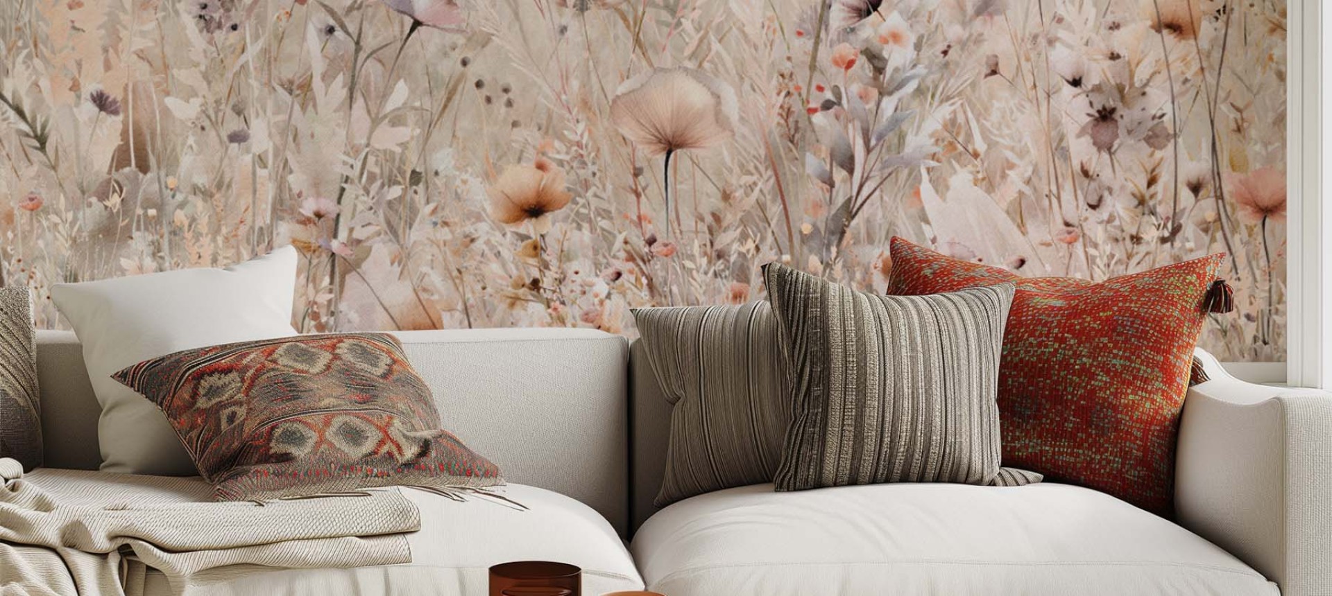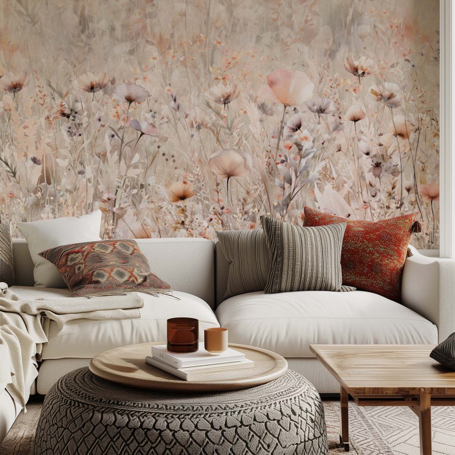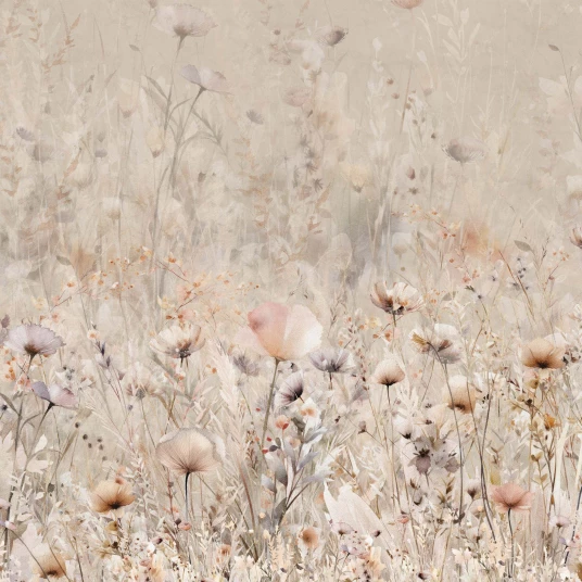 Tapeta Mido to opowieść o ciszy porannej łąki – pełnej szeptów traw i muśnięć pastelowych płatków. Delikatne kwiaty w odcieniach różu, beżu i pudrowej lawendy rozlewają się po ścianie niczym akwarela – lekko, miękko i poetycko. To propozycja dla tych, którzy szukają w aranżacji spokoju, światła i subtelności.