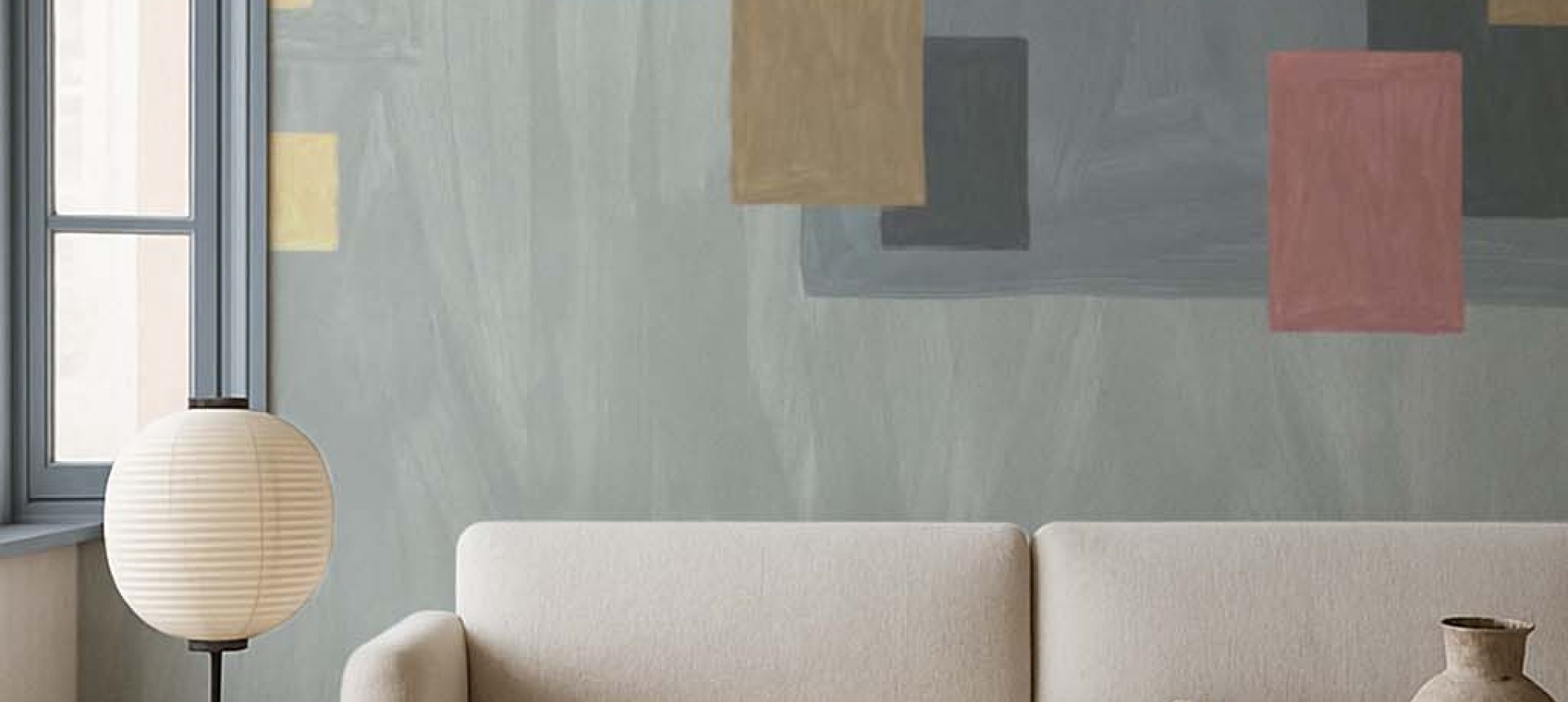 Geometryczna Tapeta ścienna Recto to przede wszystkim wyjątkowe połączenie odważnych pastelowych barw. Wzór tej tapety ściennej to kontrastujące połączenie prostokątnych form geometrycznych, ręcznie malowanych farbami olejnymi.
