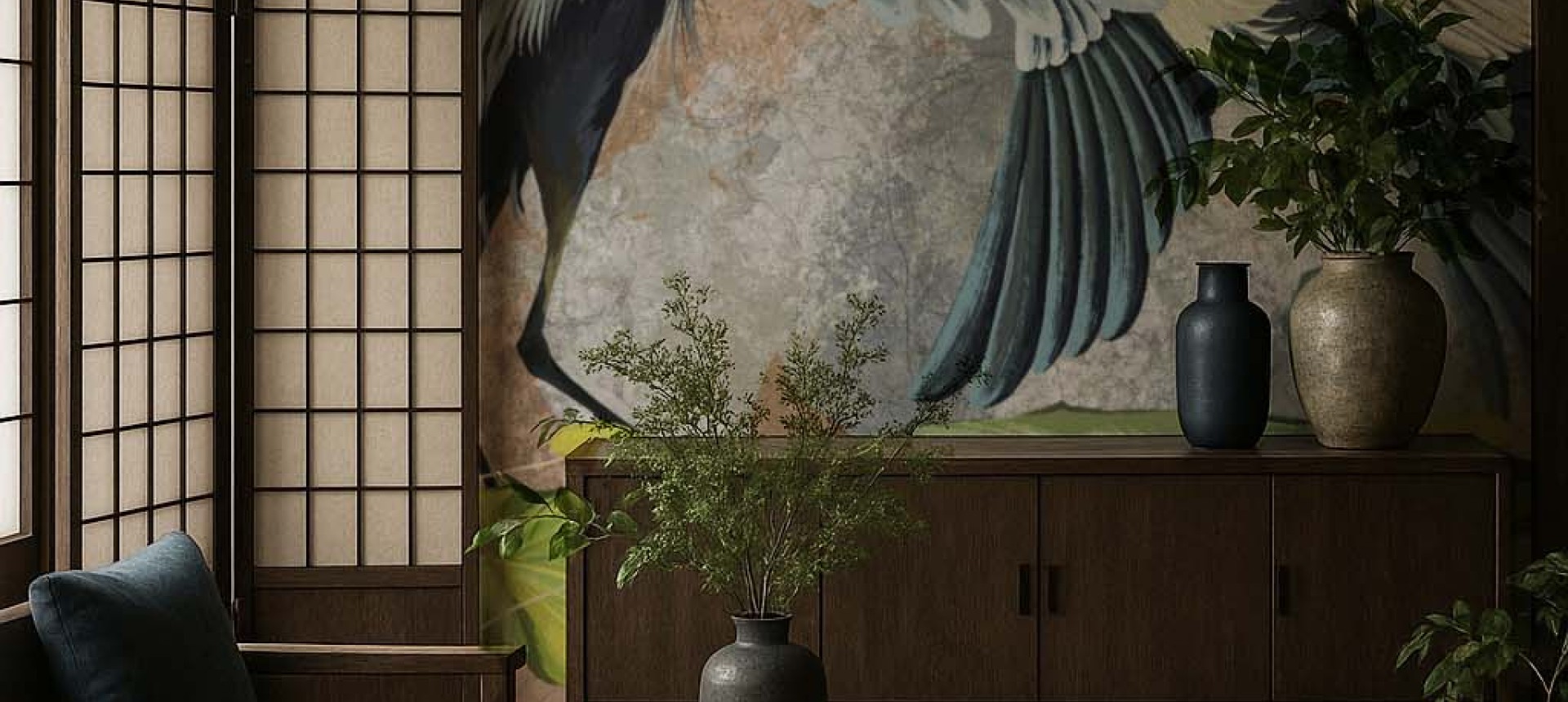 - Symbolika Orientu – motywy bambusa, lotosu i żurawi niosą ze sobą głęboką symbolikę spokoju, równowagi i szczęścia, co sprawia, że tapeta Satori doskonale nadaje się do tworzenia spokojnych, inspirujących przestrzeni.