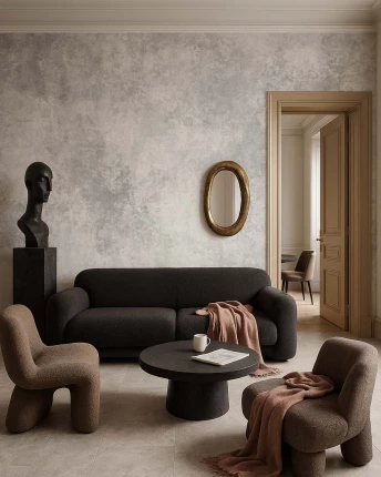 Tapeta Silenza to opowieść o ciszy i harmonii. Jej miękkie przejścia tonów szarości tworzą efekt delikatnej mgły osiadającej na ścianie. Subtelna, lekko rozmyta faktura sprawia, że wnętrze nabiera spokoju i elegancji, nie tracąc przy tym naturalnego charakteru. To wzór, który idealnie dopełnia przestrzenie w stylu wabi-sabi, japandi czy loftowym, wprowadzając atmosferę równowagi i wyciszenia.