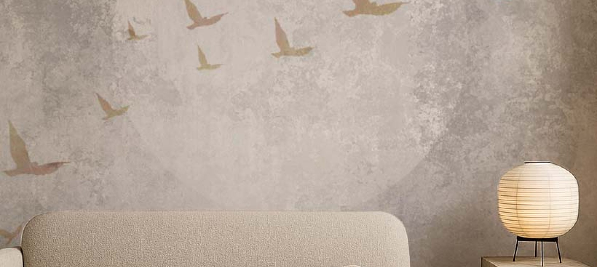 Minimalistyczna tapeta Siro jest prawdziwym dziełem sztuki, które pasuje do każdego wnętrza, dodając mu subtelności i elegancji. Na szarym betonowym tle widoczny jest wielki biały księżyc, który wznosi się na horyzoncie, emanując spokojem i tajemnicą. Wokół księżyca unoszą się sylwetki złotych ptaków, które lekko unoszą się w powietrzu. Ich delikatne sylwetki dodają scenie lekkości i harmonii, tworząc minimalistyczny, ale równocześnie pełen uroku obraz. Ta tapeta emanuje spokojem i prostotą, sprawiając, że idealnie komponuje się z różnymi stylami wnętrzarskimi. Bez względu na to, czy znajduje się w nowoczesnym apartamencie czy klasycznym domu, ta tapeta dodaje mu wyjątkowego charakteru i atmosferyczności.