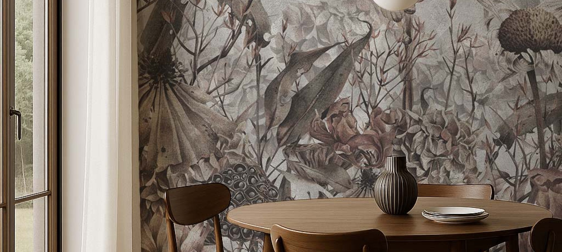 Wzór tapety Tari jest wyjątkowo elegancki, dzięki czemu świetnie sprawdzi się w różnych pomieszczeniach i stylach wnętrzarskich. W salonie może stać się centralnym elementem dekoracyjnym, tworząc ciepłą i przyjazną atmosferę. Subtelne roślinne motywy wprowadzą do przestrzeni przytulność, a elegancka kolorystyka nada wnętrzu stylowego charakteru.