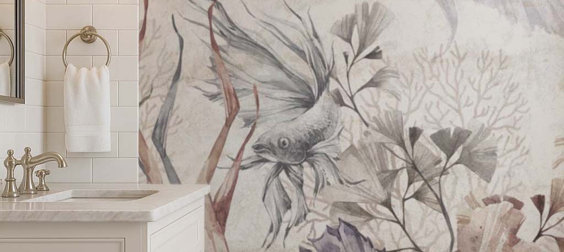 Kompozycja tapety Velo, podobnie jak tapety Florium, została stworzona w naszym dziale projektowym z myślą o urozmaiceniu wnętrz łazienek. Jednak nasi klienci szybko docenili jej finezyjny i niezwykle harmonijny wzór również w innych pomieszczeniach, takich jak pokoje dziecięce czy klimatyczne sypialnie.